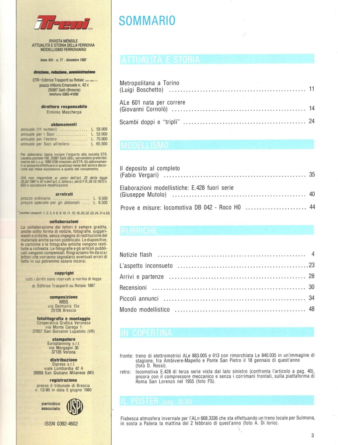 | Titolo: | Rivista I Treni anno VIII n. 77 – Dicembre 1987 |