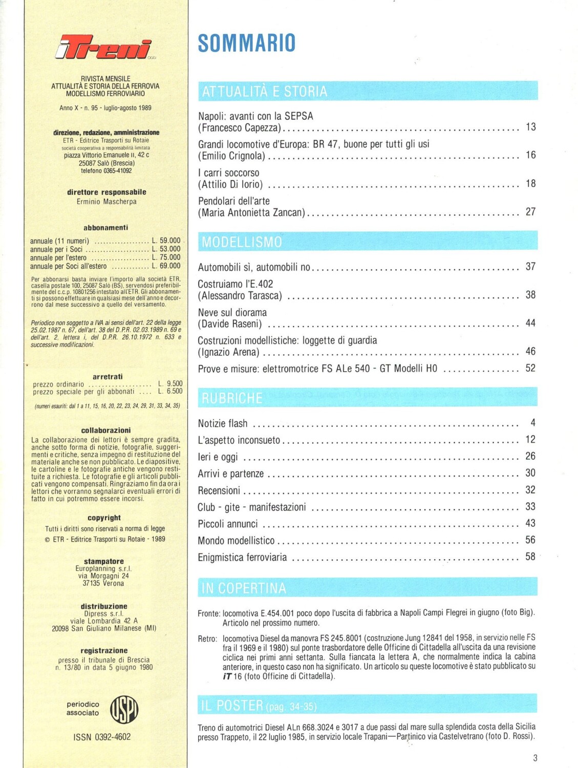 | Titolo: | Rivista I Treni anno X n. 95 – Luglio Agosto 1989 |