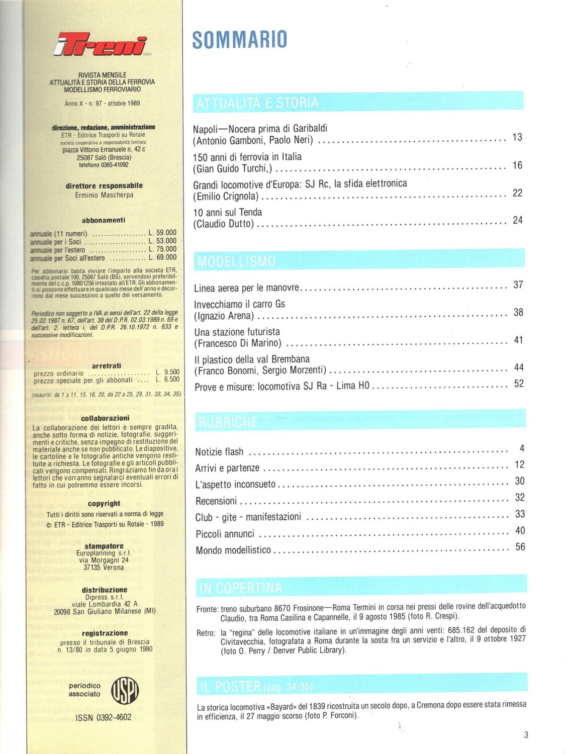 | Titolo: | Rivista I Treni anno X n. 97 – Ottobre 1989 |