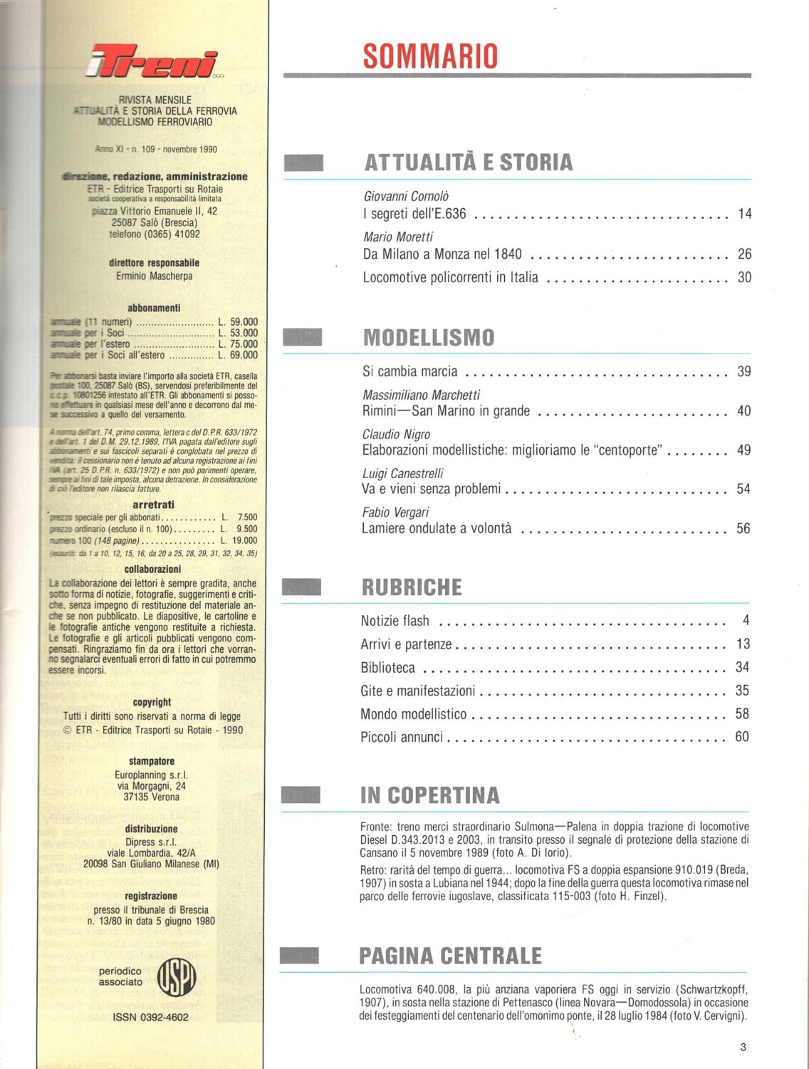 | Titolo: | Rivista I Treni anno XI n. 109 – Novembre 1990 |
