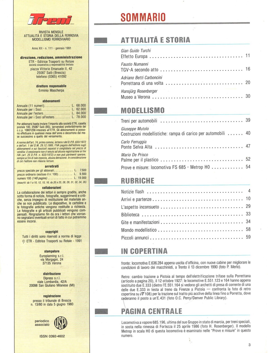| Titolo: | Rivista I Treni anno XII n. 111 – Gennaio 1991 |