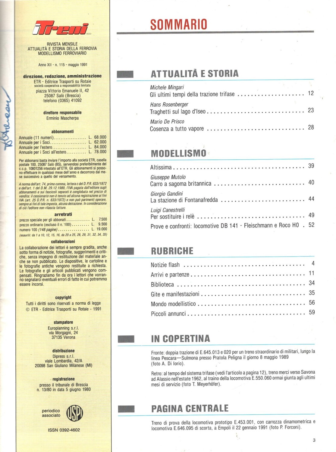 | Titolo: | Rivista I Treni anno XII n. 115 – Maggio 1991 |