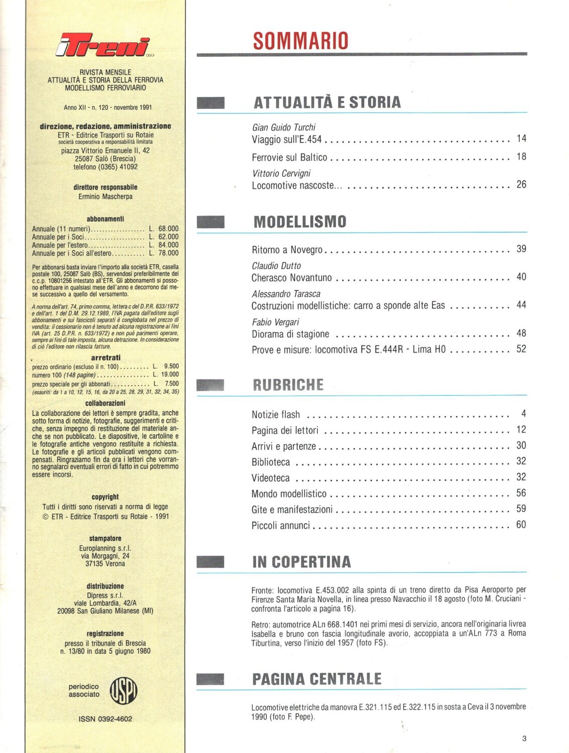 | Titolo: | Rivista I Treni anno XII n. 120 – Novembre 1991 |