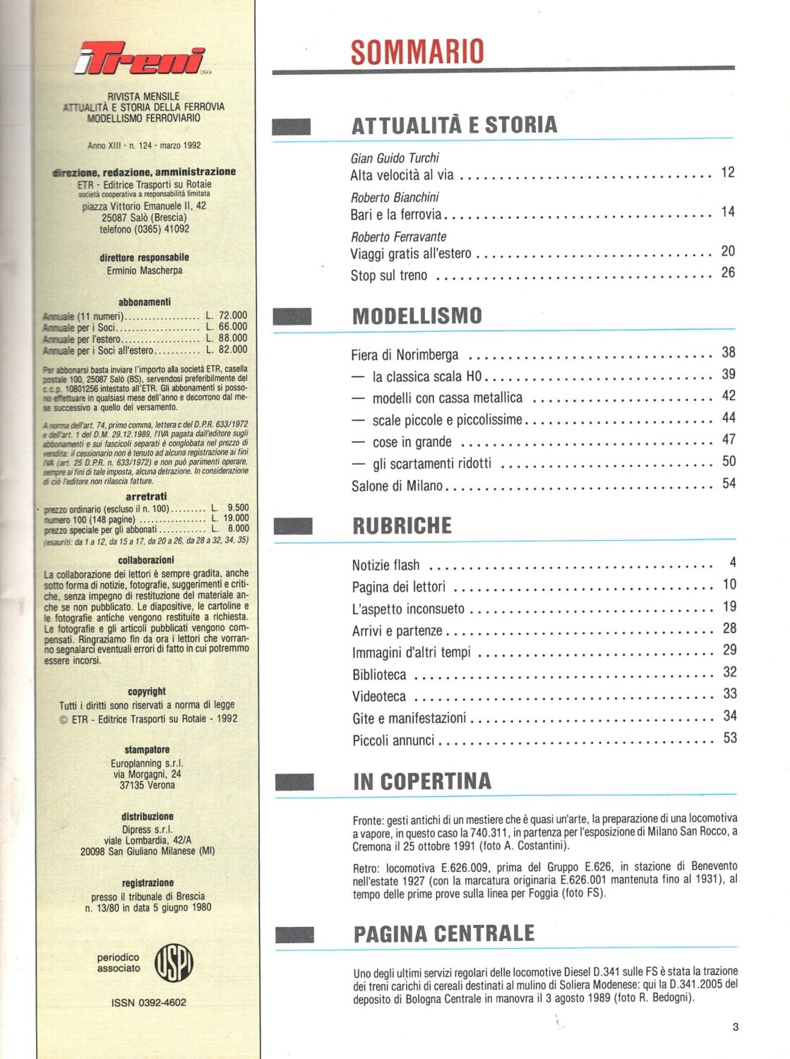 Rivista I Treni anno XIII n. 124 – Marzo 1992