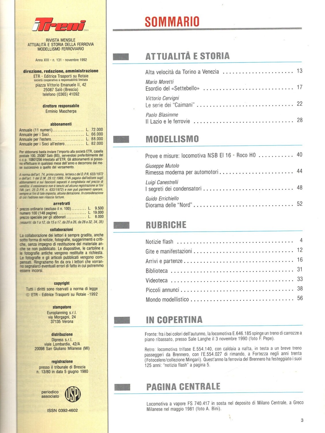 Rivista I Treni anno XIII n. 131 – Novembre 1992