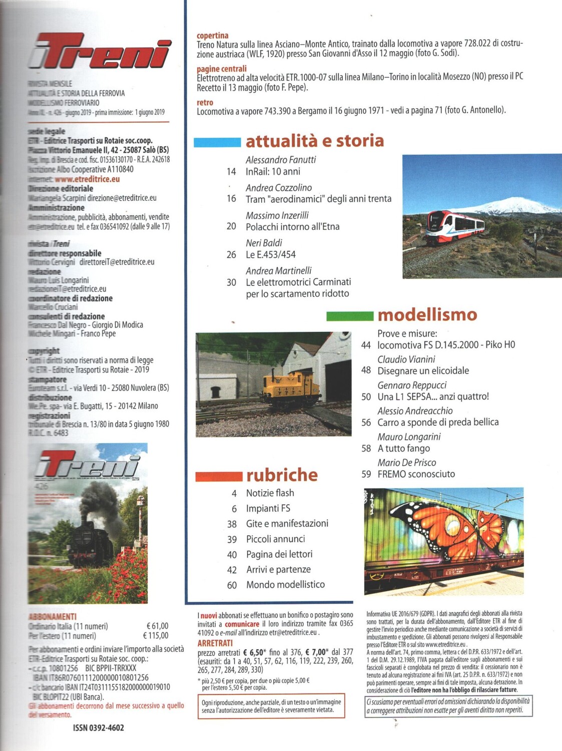 | Titolo: | Rivista I Treni anno XL n. 426 – Giugno 2019 |