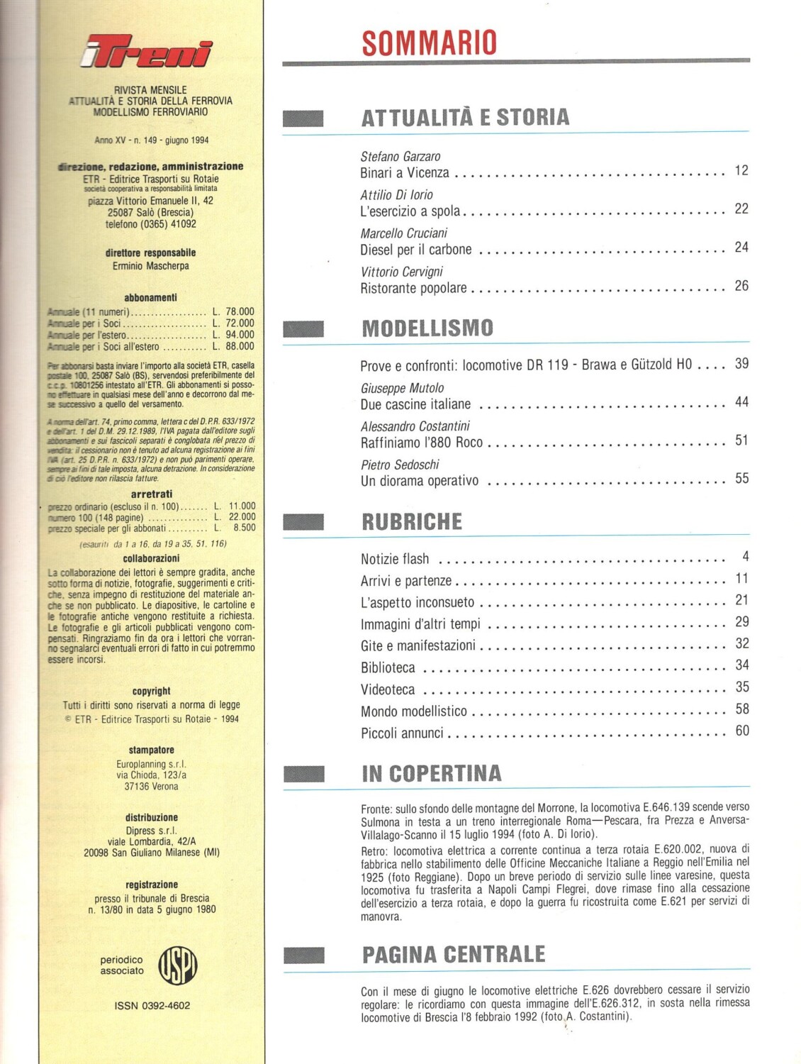 | Titolo: | Rivista I Treni anno XV n. 149 – Giugno 1994 |