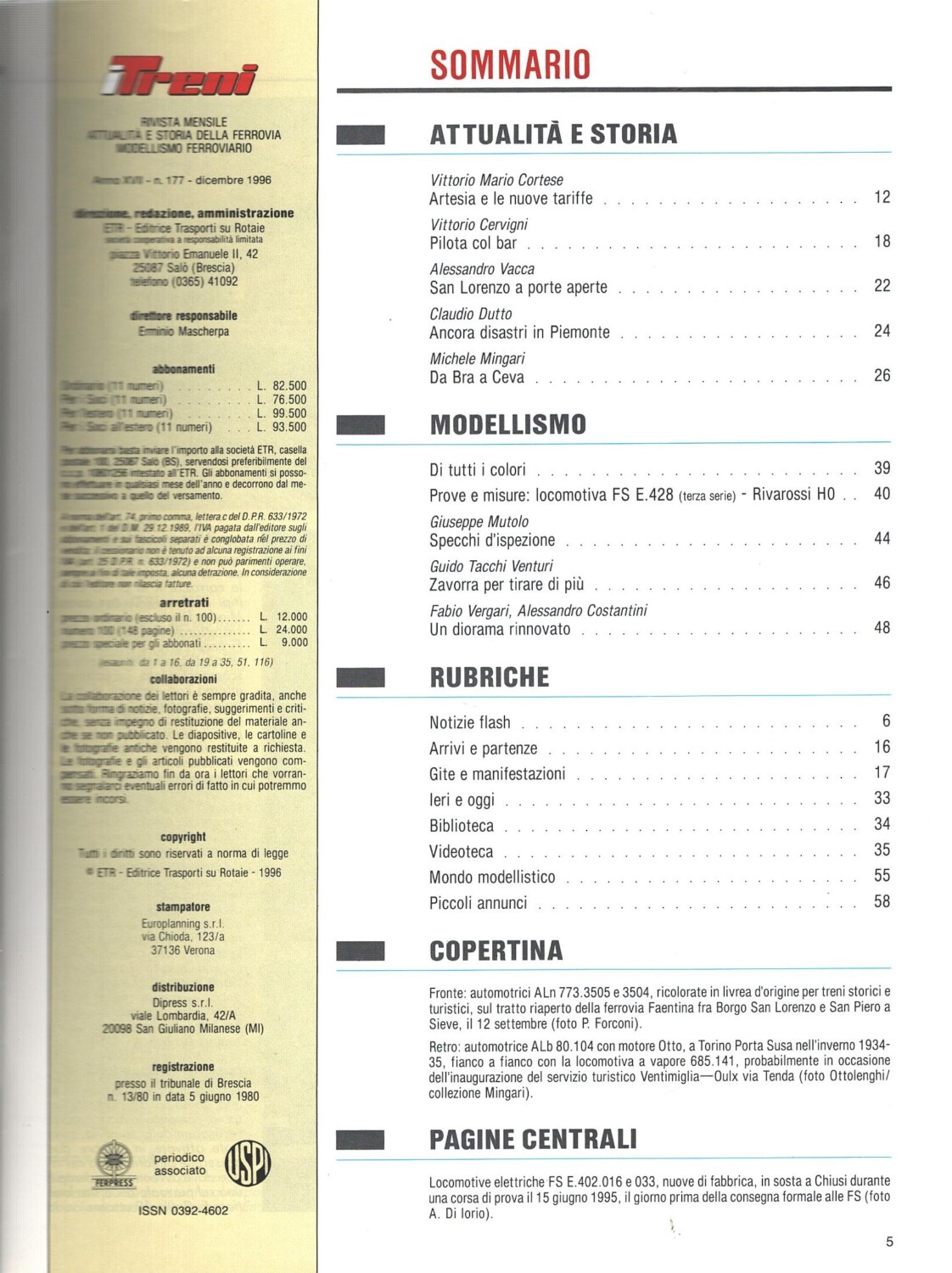 Rivista I Treni anno XVII n. 177 – Dicembre 1996