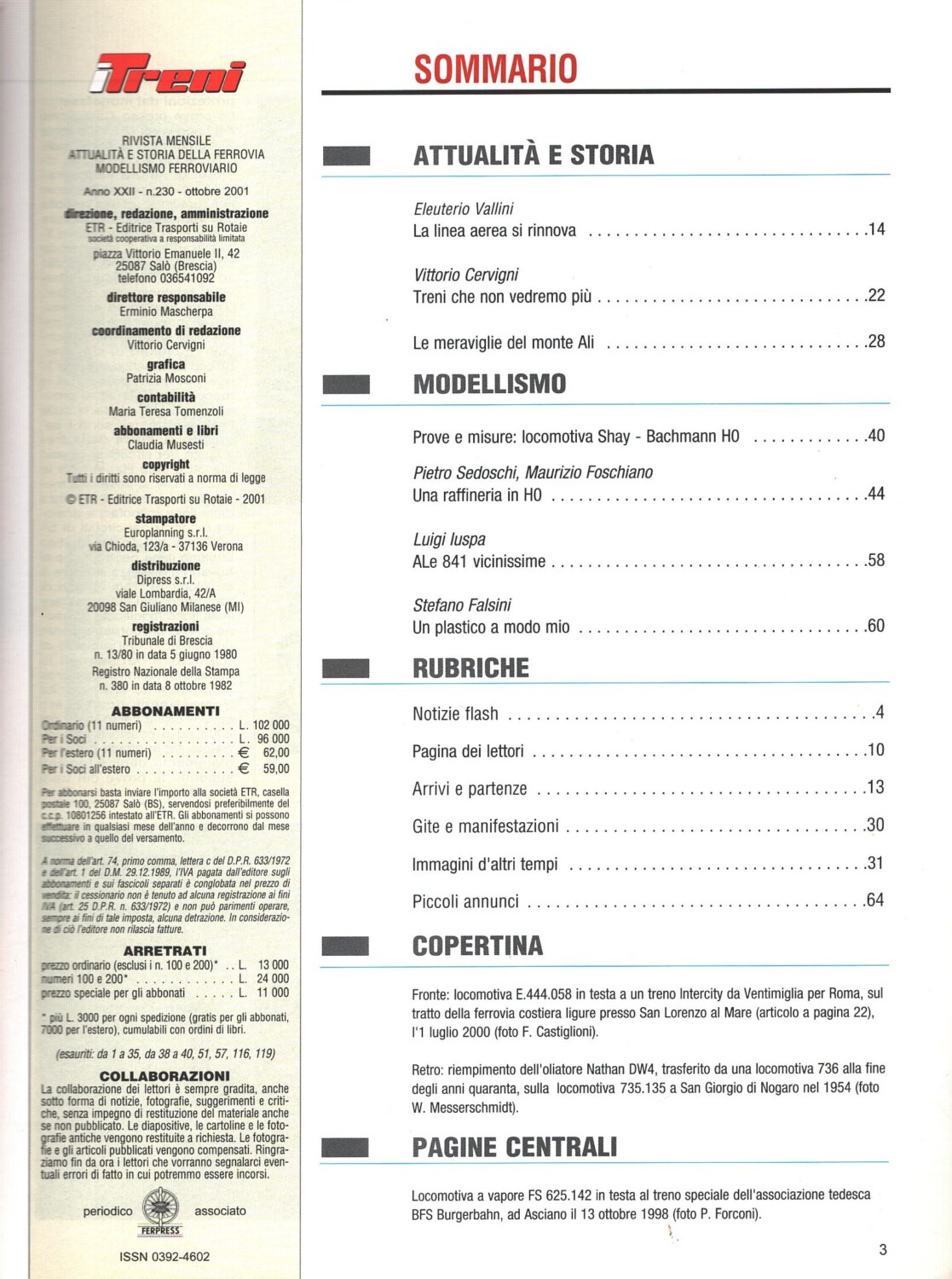 | Titolo: | Rivista I Treni anno XXII n. 230 – Ottobre 2001 |