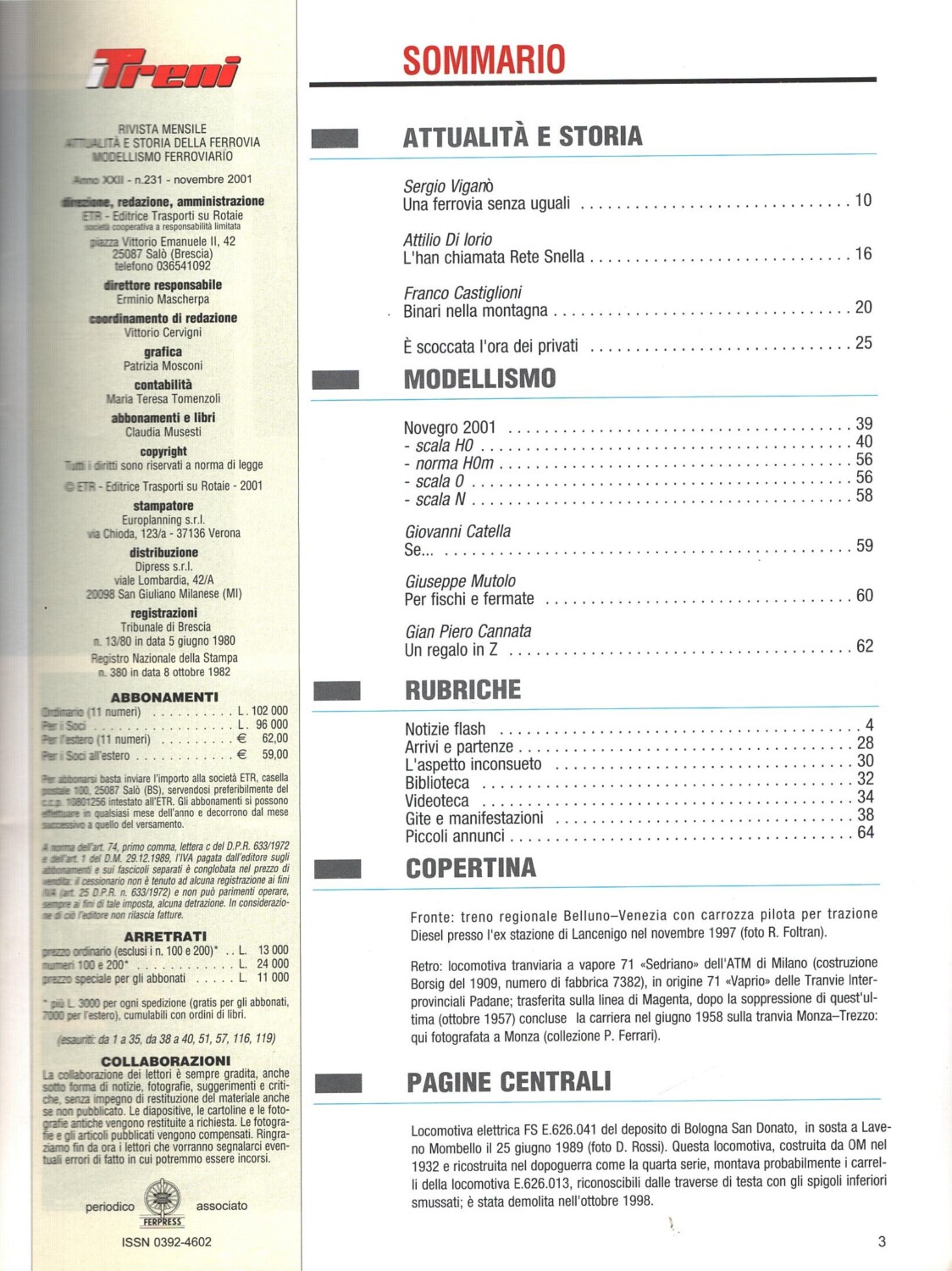 Rivista I Treni anno XXII n. 231 – Novembre 2001