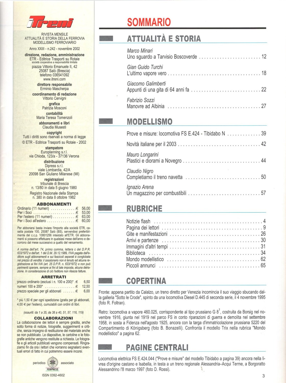 | Titolo: | Rivista I Treni anno XXIII n. 242 – Novembre 2002 |