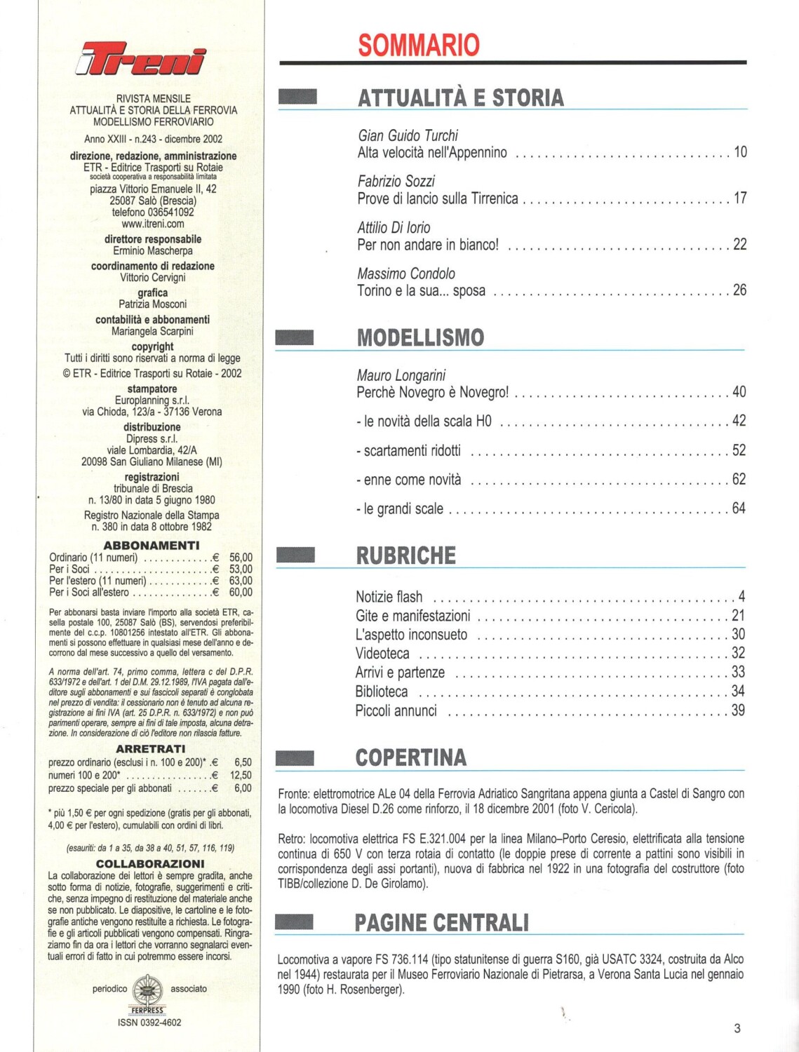 | Titolo: | Rivista I Treni anno XXIII n. 243 – Dicembre 2002 |