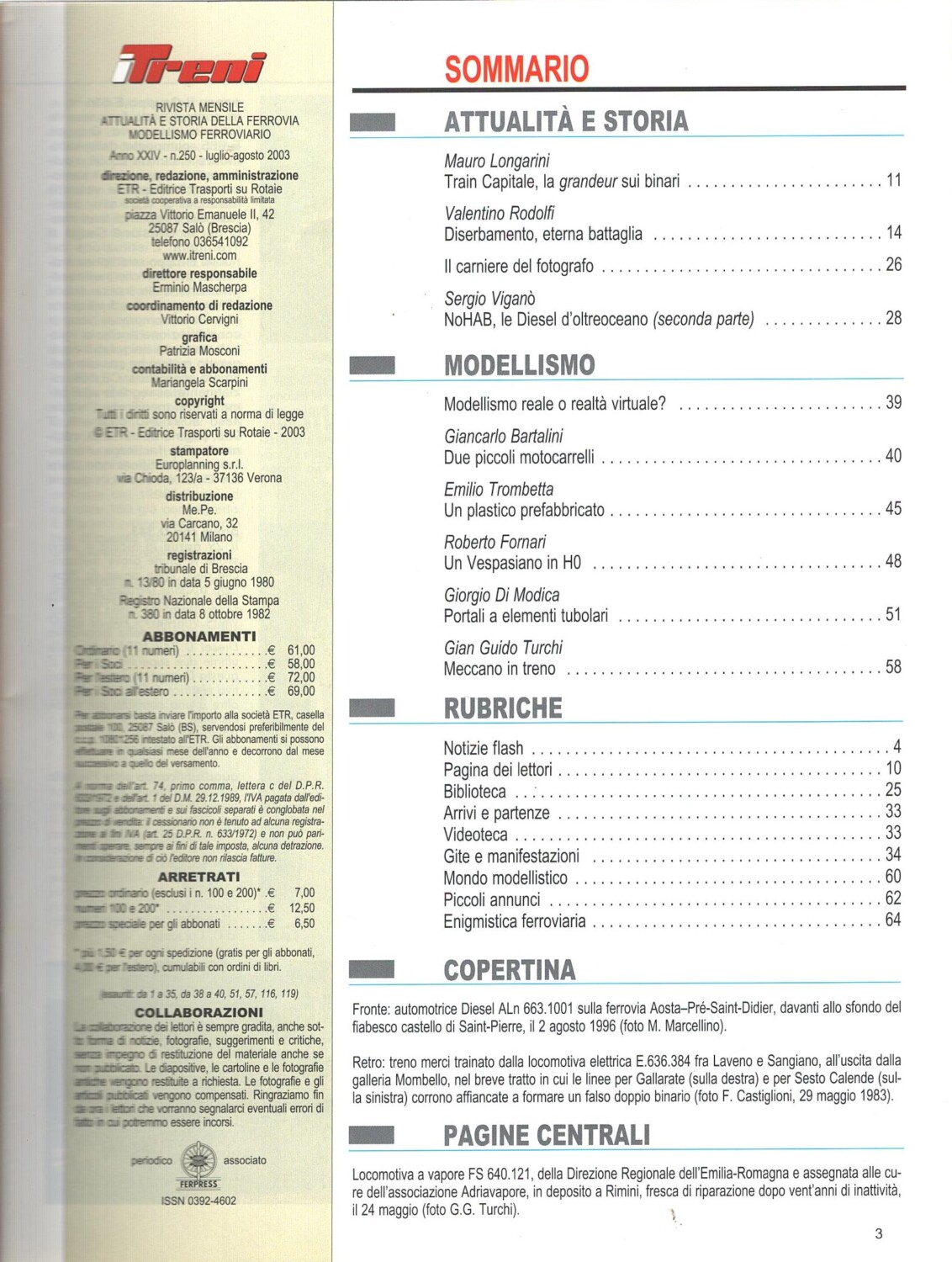 | Titolo: | Rivista I Treni anno XXIV n. 250 – Luglio Agosto 2003 |