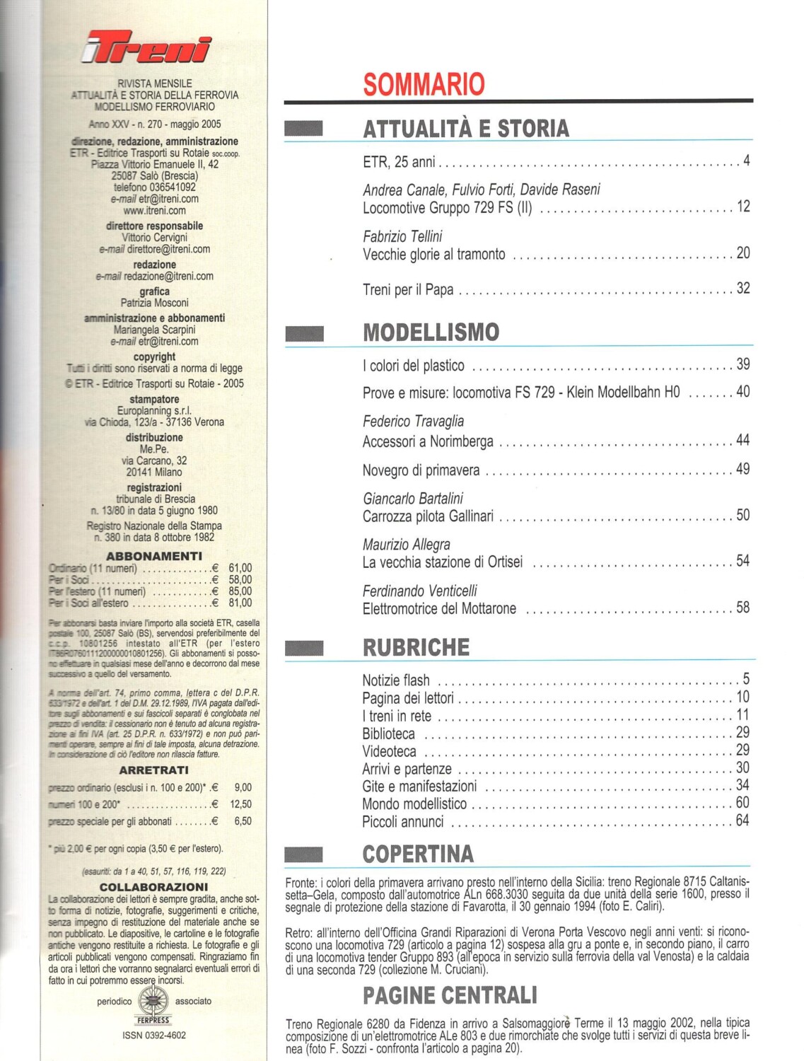 Rivista I Treni anno XXVI n. 270 – Maggio 2005