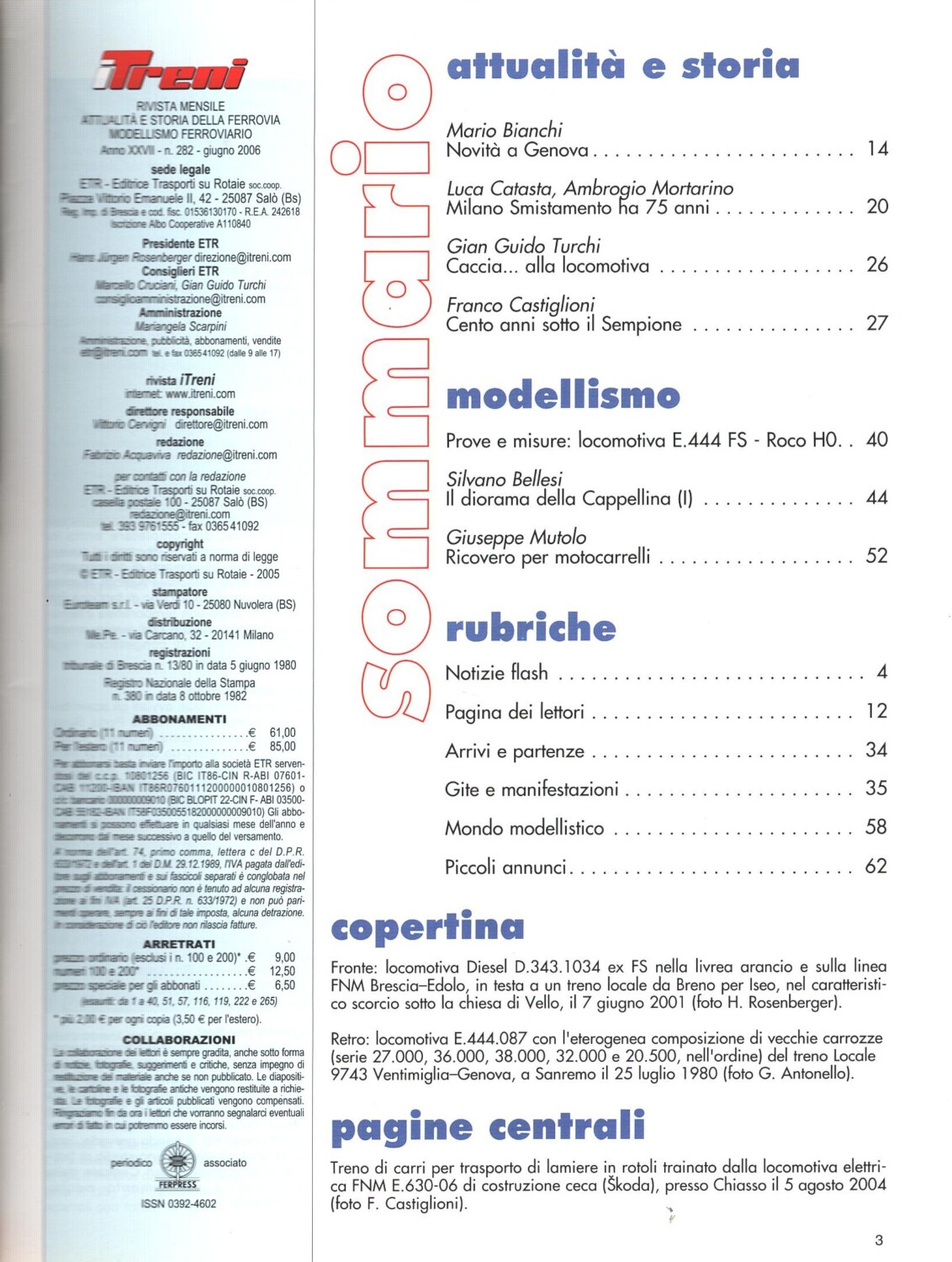 Rivista I Treni anno XXVII n. 282 – Giugno 2006