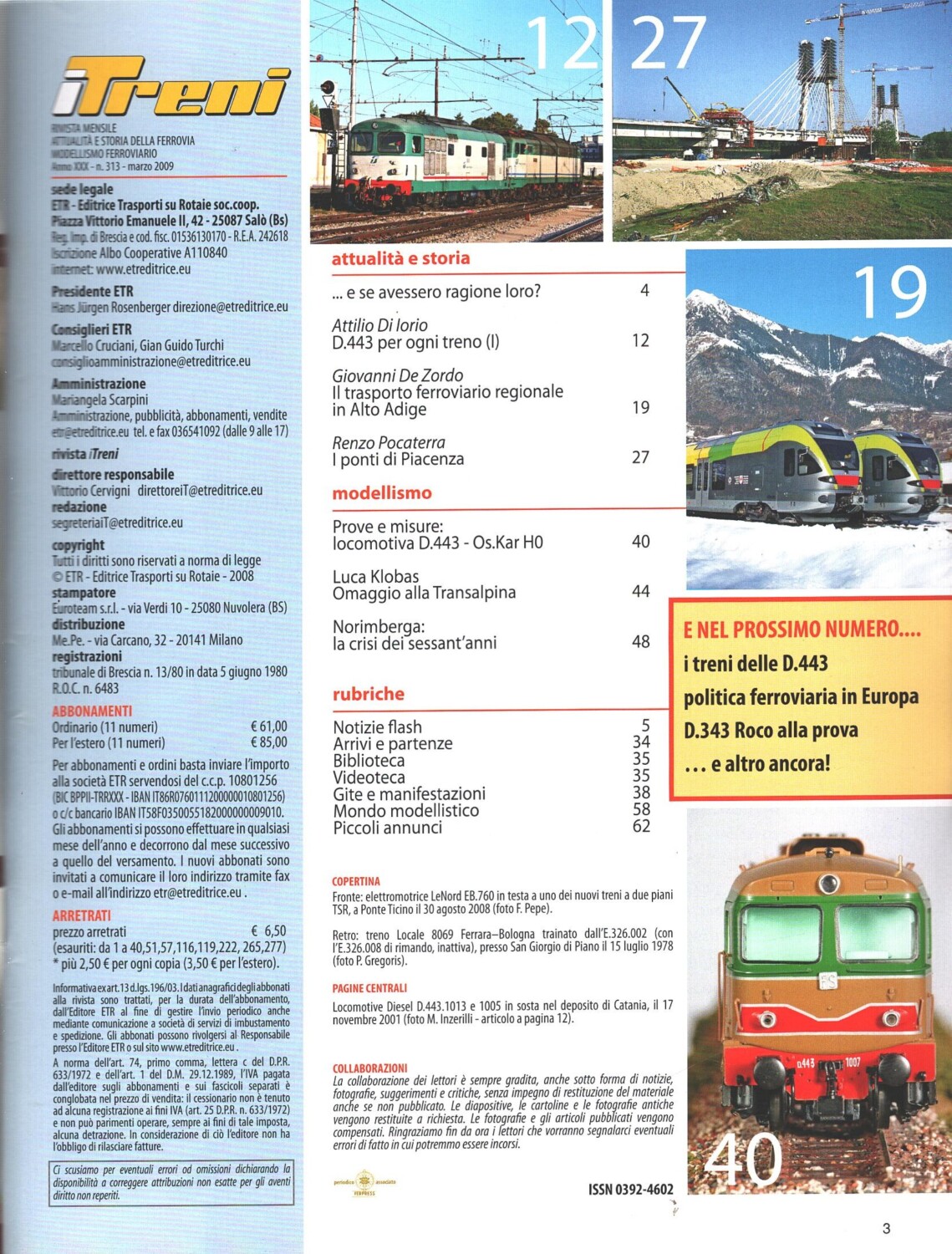 | Titolo: | Rivista I Treni anno XXX n. 313 – Marzo 2009 |