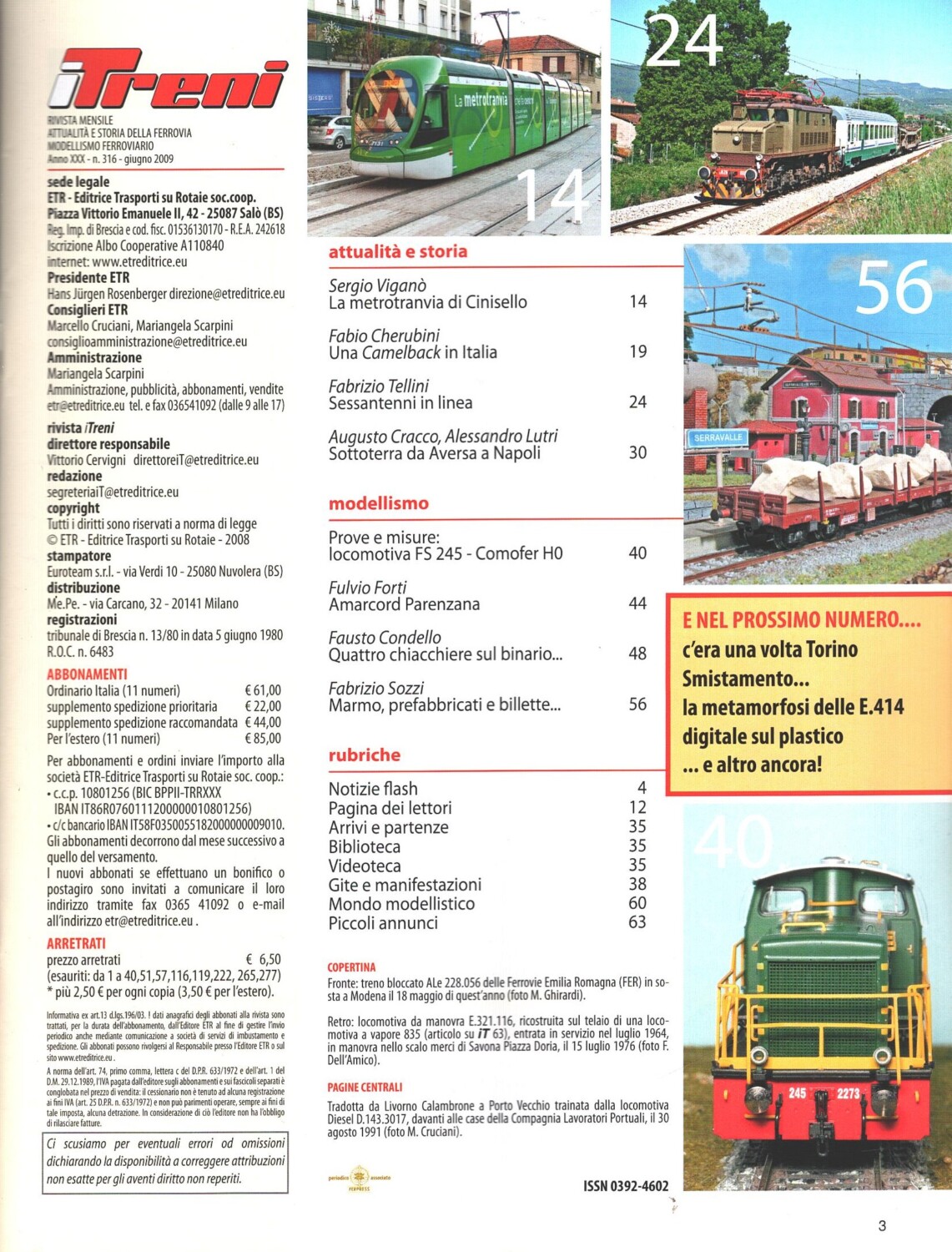 | Titolo: | Rivista I Treni anno XXX n. 316 – Giugno 2009 |