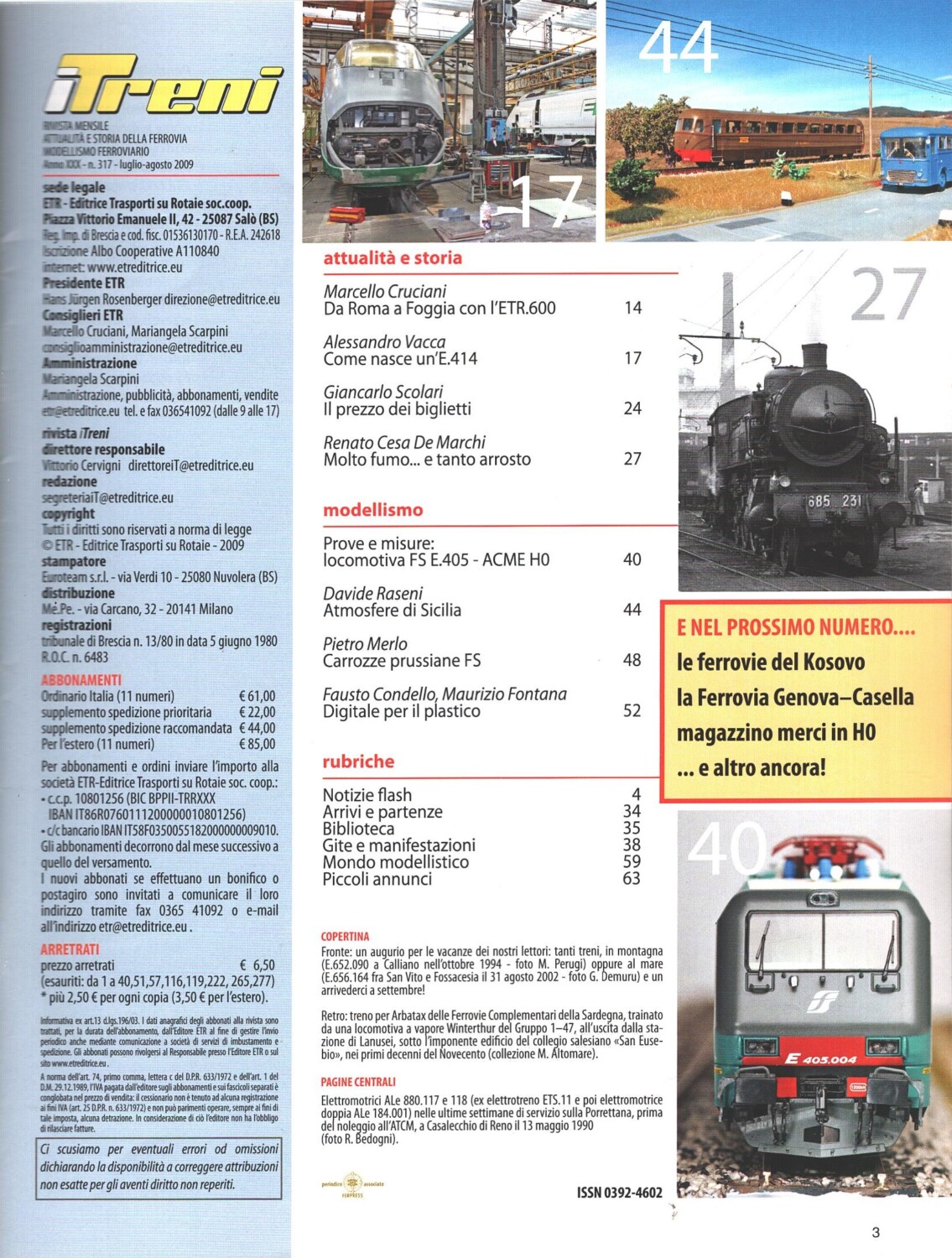 | Titolo: | Rivista I Treni anno XXX n. 317 – Luglio Agosto 2009 |
