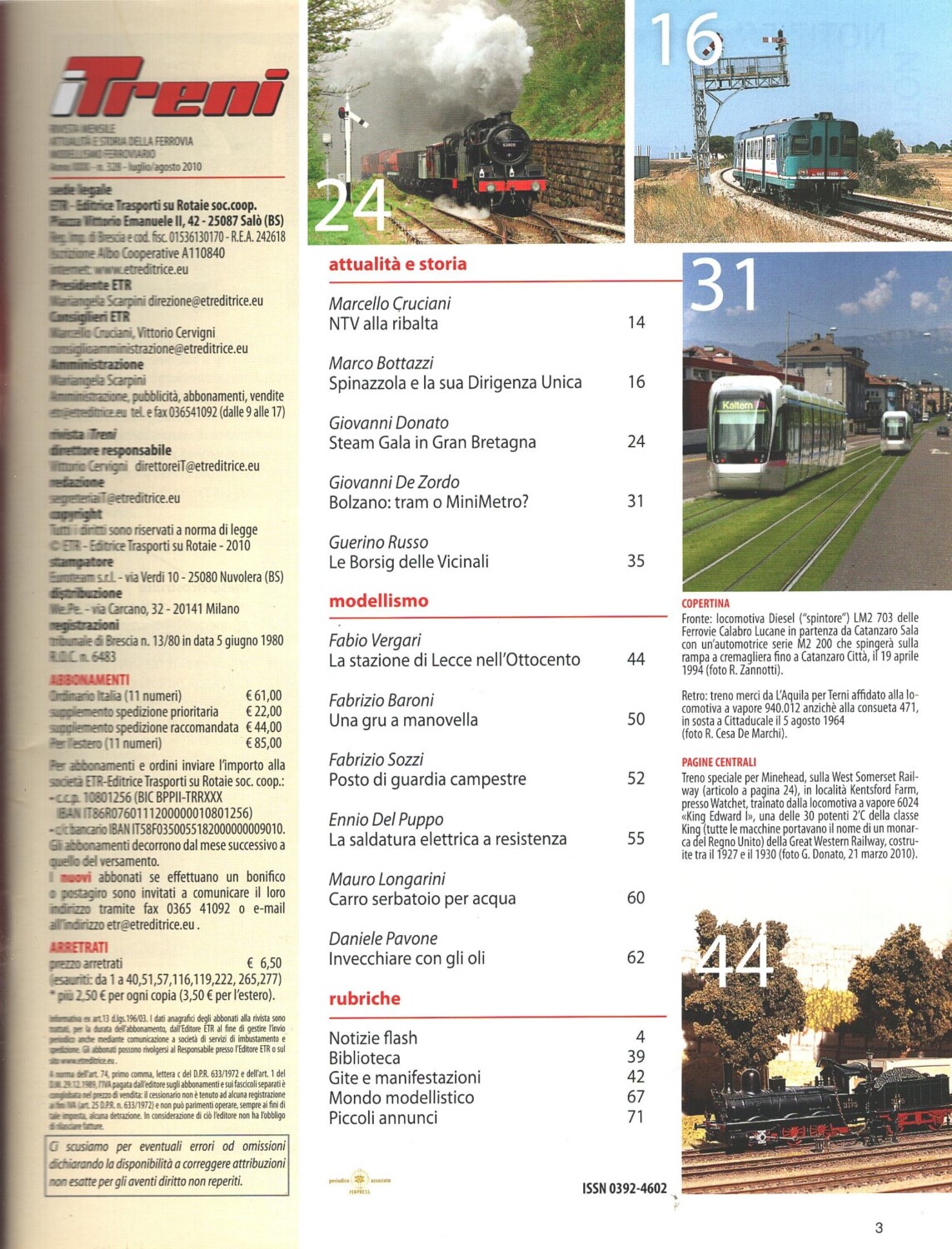 Rivista I Treni anno XXXI n. 328 – Luglio Agosto 2010