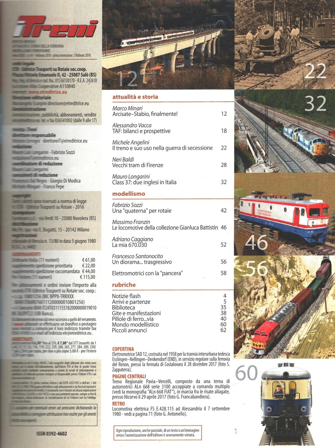 | Titolo: | Rivista I Treni anno XXXIX n. 411 – Febbraio 2018 |