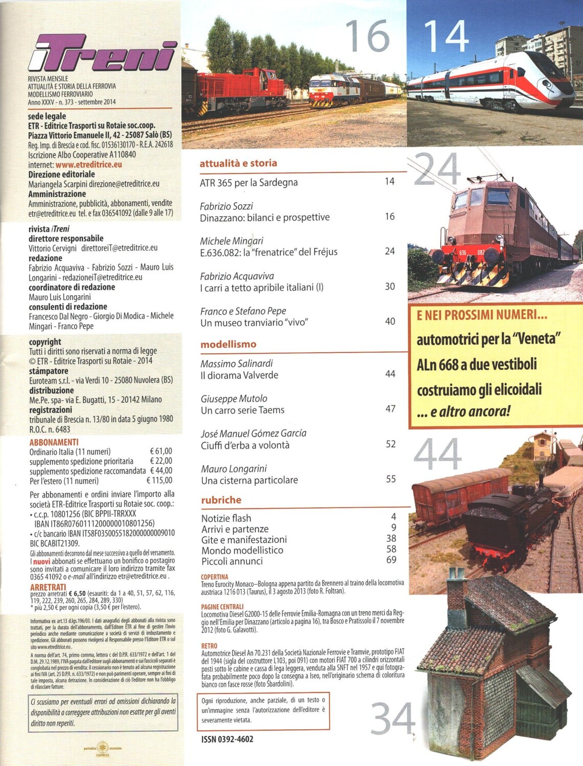 | Titolo: | Rivista I Treni anno XXXV n. 373 – Settembre 2014 |