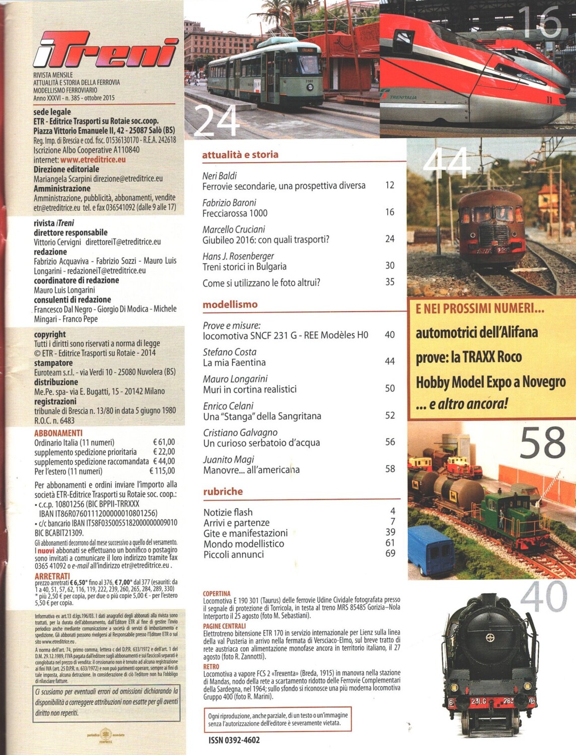 | Titolo: | Rivista I Treni anno XXXVI n. 385 – Ottobre 2015 |
