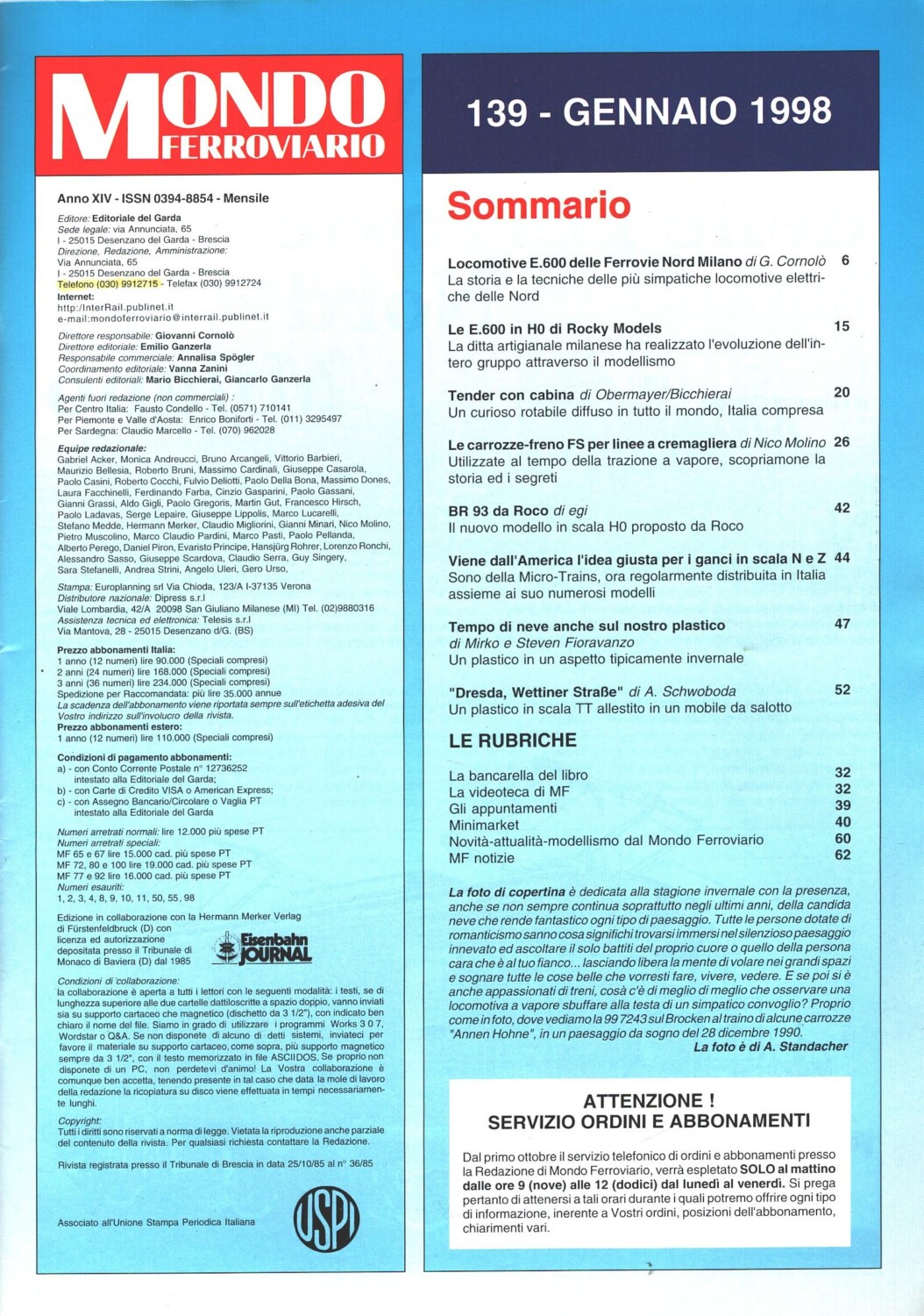 | Titolo: | Rivista Mondo Ferroviario n. 139 – Gennaio 1998 |