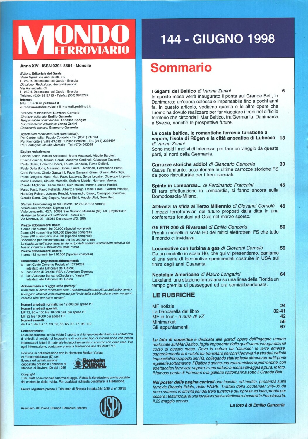Rivista Mondo Ferroviario n. 144 – Giugno 1998