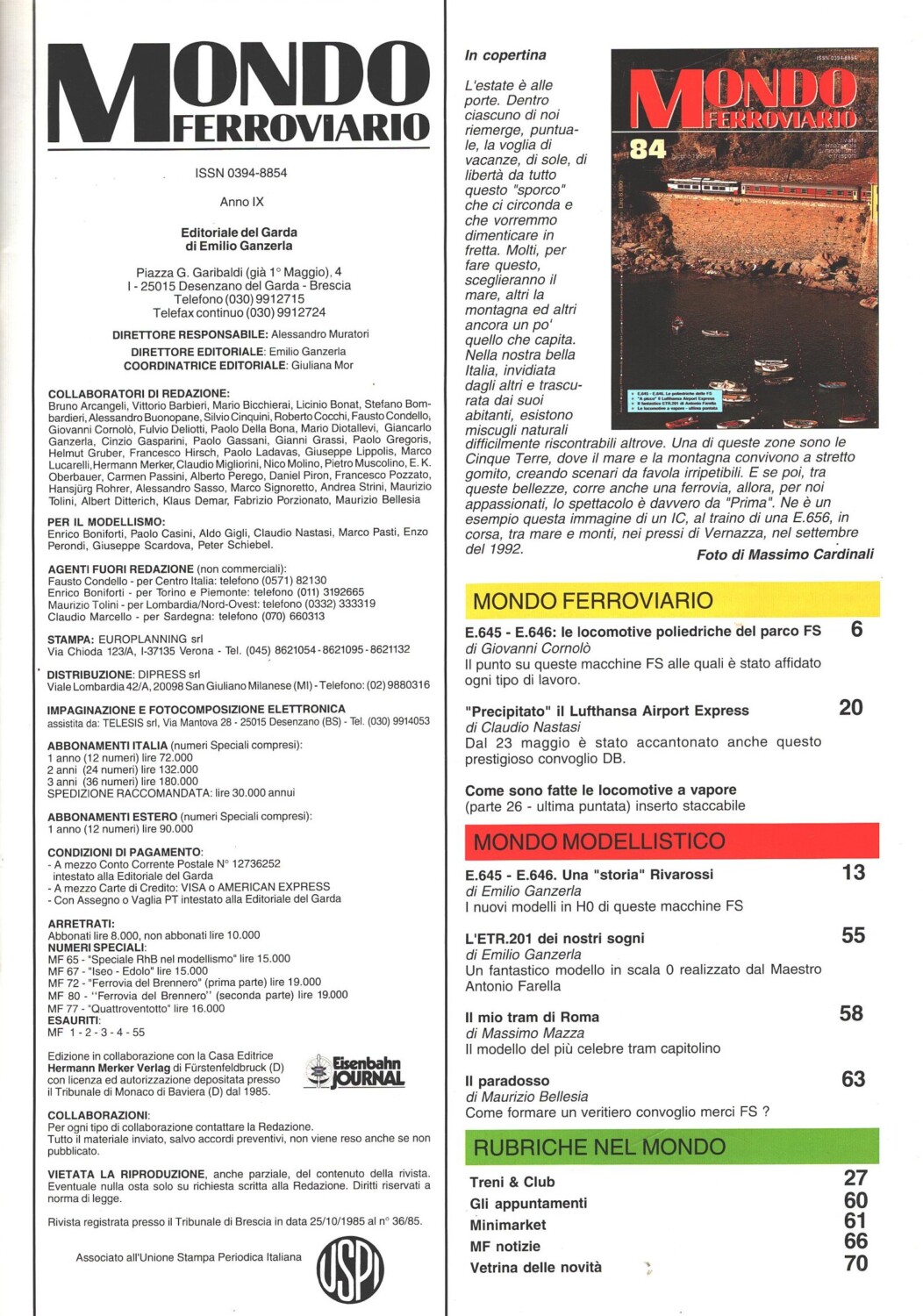 Rivista Mondo Ferroviario n. 84 – Giugno 1993