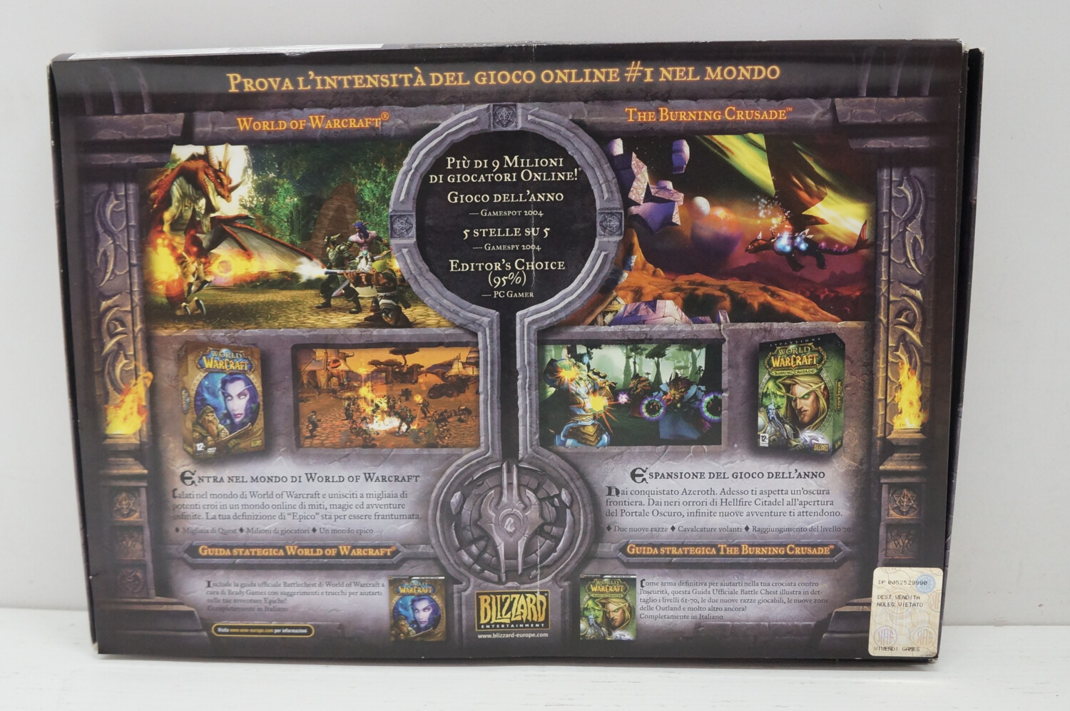 | NOTA BENE: Nel box in cartoncino sono in clusi sono 2 Battle chest guide in Italiano, Manuale di gioco espansione Burnig Crusade in Italiano, Manuale di gioco di World of Warcraft, catalogo prodotti. |