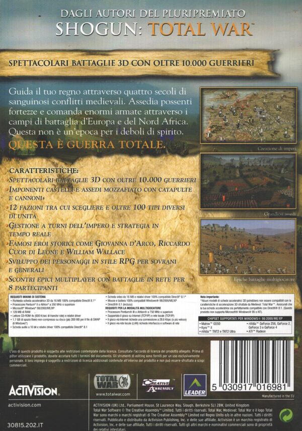 Medieval Total War (2 dischi) – Videogioco PC in Italiano