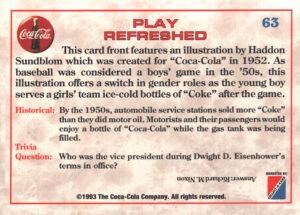 Coca-Cola CollezionismoCard Coca-Cola USA n. 63 – Play refreshed 1952 – Trivia Card 1993 ed. Marketed