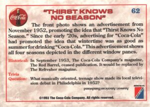Coca-Cola CollezionismoCard Coca-Cola USA n. 62 – Thirst knows no season 1952 – Trivia Card 1993 ed. Marketed