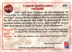 Coca-Cola CollezionismoCard Coca-Cola USA n. 64 – Take enough home 1953 – Trivia Card 1993 ed. Marketed