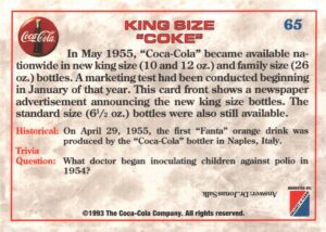 Coca-Cola CollezionismoCard Coca-Cola USA n. 65 – King Size Coke 1955 – Trivia Card 1993 ed. Marketed