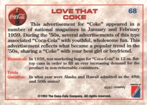 Coca-Cola CollezionismoCard Coca-Cola USA n. 68 – Love that Coke 1959 – Trivia Card 1993 ed. Marketed