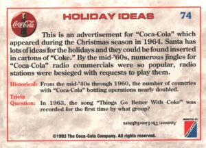 Coca-Cola CollezionismoCard Coca-Cola USA n. 74 – Holiday Ideas 1964 – Trivia Card 1993 ed. Marketed
