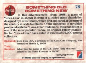 Coca-Cola CollezionismoCard Coca-Cola USA n. 75 – Something old something new 1968 – Trivia Card 1993 ed. Marketed
