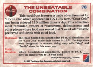 Coca-Cola CollezionismoCard Coca-Cola USA n. 78 – The unbeatable combination 1971 – Trivia Card 1993 ed. Marketed