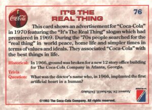 Coca-Cola CollezionismoCard Coca-Cola USA n. 76 – It’s the real thing 1970 – Trivia Card 1993 ed. Marketed