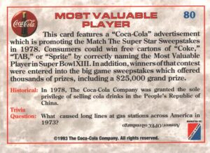 Coca-Cola CollezionismoCard Coca-Cola USA n. 80 – Most Valuable Player 1978 – Trivia Card 1993 ed. Marketed