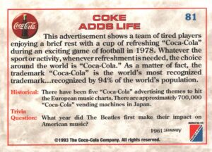 Coca-Cola CollezionismoCard Coca-Cola USA n. 81 – Coke Adds Life 1978 – Trivia Card 1993 ed. Marketed