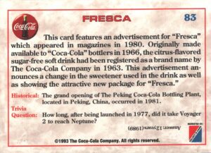 Coca-Cola CollezionismoCard Coca-Cola USA n. 83 – Fresca 1980 – Trivia Card 1993 ed. Marketed