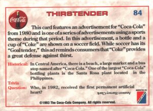 Coca-Cola CollezionismoCard Coca-Cola USA n. 84 – Thirstender 1980 – Trivia Card 1993 ed. Marketed