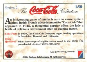 Coca-Cola CollezionismoCard The Coca-Cola Collection – Series 2 USA n. 159 – Trivia Card 1994 ed. Marketed
