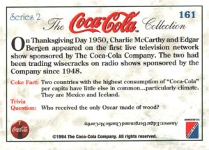 Coca-Cola CollezionismoCard The Coca-Cola Collection – Series 2 USA n. 161 – Trivia Card 1994 ed. Marketed