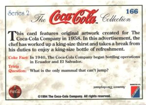 Coca-Cola CollezionismoCard The Coca-Cola Collection – Series 2 USA n. 166 – Trivia Card 1994 ed. Marketed