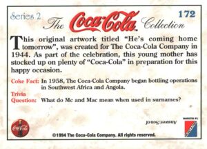 Coca-Cola CollezionismoCard The Coca-Cola Collection – Series 2 USA n. 172 – Trivia Card 1994 ed. Marketed