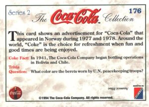 Coca-Cola CollezionismoCard The Coca-Cola Collection – Series 2 USA n. 176 – Trivia Card 1994 ed. Marketed