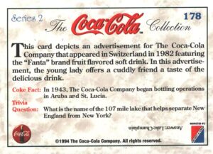 Coca-Cola CollezionismoCard The Coca-Cola Collection – Series 2 USA n. 178 – Trivia Card 1994 ed. Marketed